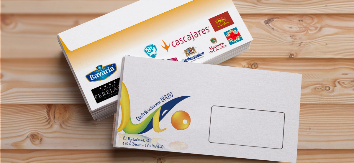 Diseño e impresión de sobres para DISDUERO (distribuidora de bebida y alimentación)