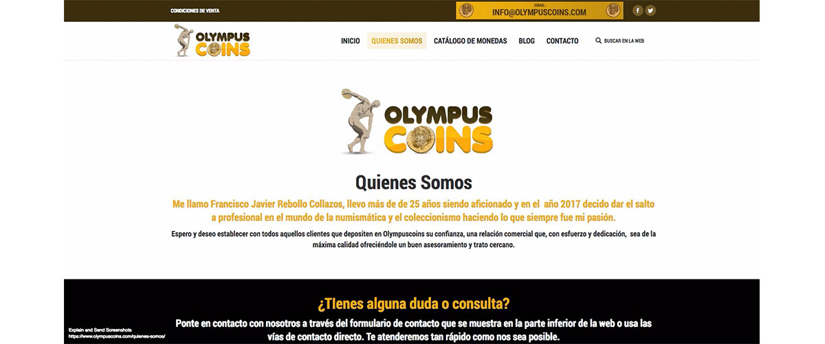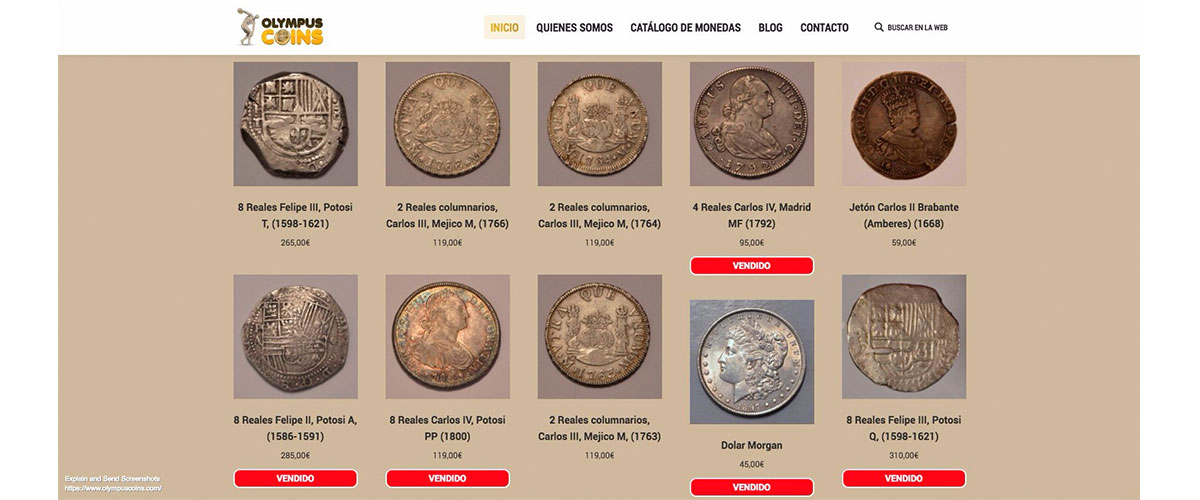 Después de realizar la imagen corporativa de OLYMPUS COINS, el cliente nos encargo realizar una web a medida bajo WordPress donde pudiera mostrar su catálogo de monedas e ir publicando entradas de blog, además le hemos instalado un certificado de seguridad SSL que tan importante esta siendo este año en el posicionamiento.