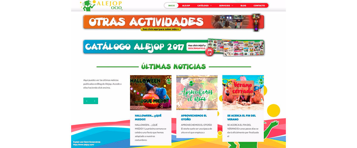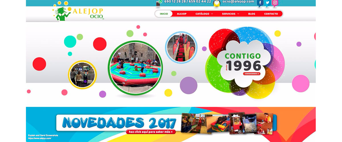Vuelven a confiar en nosotros una de las empresas mas conocidas en Castilla y León dedicada a los hinchables como actividad principal entre otras animaciones infantiles. Hemos querido hacer un nuevo WordPress dando rienda suelta al diseño gráfico aplicando mucho colorido, donde el catálogo es lo mas importante para que sus cñientes tengan una gran orientación de los que van a contratar. También en esta etapa hemos querido potenciar el Social Media, con un seguimiento importante en las redes sociales y el blog.